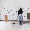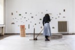 My fascination for time and my attempts to get a grip on it come from my incapability to adapt to the contemporary Western concept of time.The present is a phase in the evolution from the past to the future, an interval in which everything is questioned. By requestioning, rethinking and reformulating our plans we feel'here and now' as an uncertain, undetermined time. The secure past becomes doubtful, the future is a unsure. The result is a reduction inherent in contemporary thinking.The present, that period of uncertainty, is something I try to lay my hands on in an obsessive, tactile way with unproductive, wasted, excessive time, activities that do not lead to the creation of any durable project. By doing this I can protect the materials which can’t be detained. I hold on to a repetition in my act and work that eventually even can sufficate the detainable.I consider the time I spend with my materials as a material itself.I play with time. My work reflects how I handled it, thus reaching it’s final appearance.With this installation I ask myselfif it is possible to step out of this creation without imposing changes to the world.'My' world in relation to 'the' world.I have a fascination with the tactile aspect of textile. For me, textile is like a second skin that enables me to feel situations in a sensitive way.It's a manner ofperceiving the world. It’s my manner of perceiving the world.