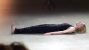 "She thought I was a Valentino runway model, but there I was at home in my sweatpants". The quote is for real and stems from when the artist was suffering from depression during one year, reduced to a relentless rationing of energy. When unable to walk, get out of bed, to get dressed, to answer an email, sometimes speak or understand language, she stumbled on some beautiful Valentino haute couture gowns, and started to Photoshop her face into those really expensive beautiful dresses for the privileged; to change face, or life. Creating moments where she afterwards realized that she hadn’t thought about the illness for a few precious hours. One day she posted it online, and an acquaintance thought she was the model.She wrote everything down of fear of forgetting, she forgot anyway, so that may seemed pointless. But when recovering and working with her MFA solo exhibition she found her way back to the notes. The project is based on all the writing during those years, an excavation of archives, for a subtraction into a second bodice. In the work Above the silent, we meet the artist in a live solo performance in which she is blending together video projections, spoken word and choreography and absurdly performing what could look like a catwalk while privately speaking from the very dark corners of her existence. The poetry together with choreography forms the performance. And with the notion that as every day is followed by a night, so every night is followed by a day.