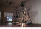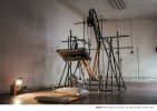 The machine Sisyphean draws from one of Da Vinci’s mechanical inventions. The work is simple in its construction so that its mechanical operation can be understood at first glance. The machine is meant to demonstrate endless labour. It shows neither a beginning nor an end but only a process with constant input of ‘travail’ and disappearing ‘art’.